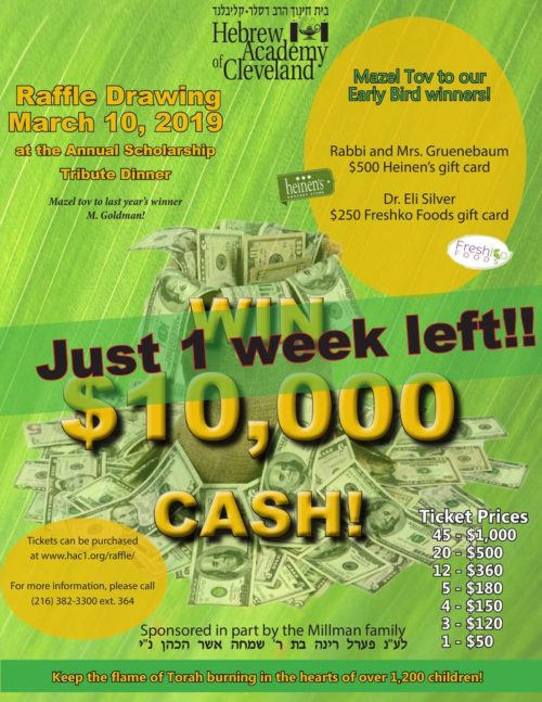 Enter for a chance to win $10,000 while supporting Cleveland’s first and largest Jewish day school.