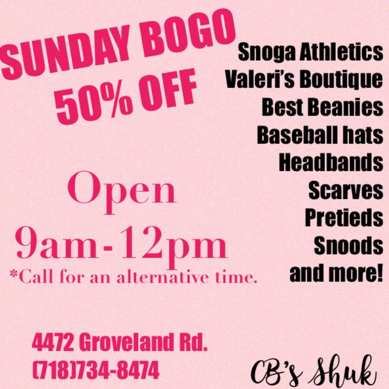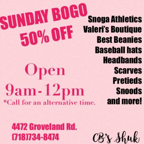CB’s Shuk Sunday BOGO 50% Off! Open 9-12pm