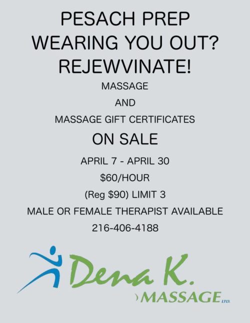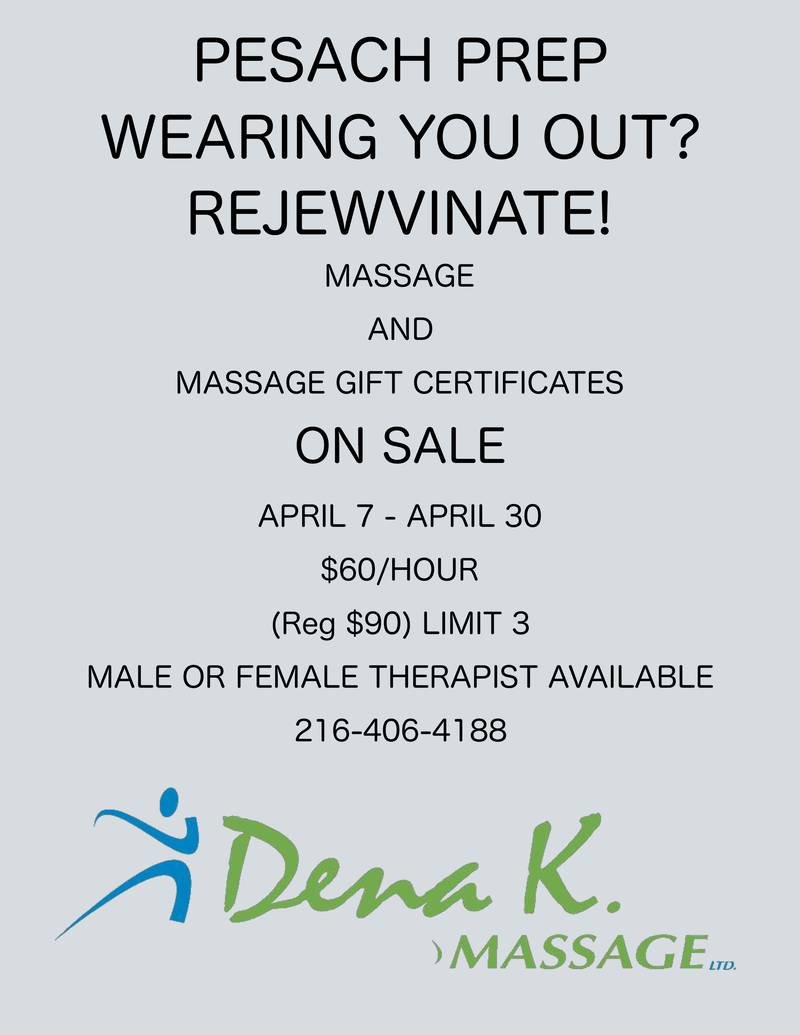 Dena K. Massage – For Yourself or as a Thoughtful Gift – Male and Female Therapists Available