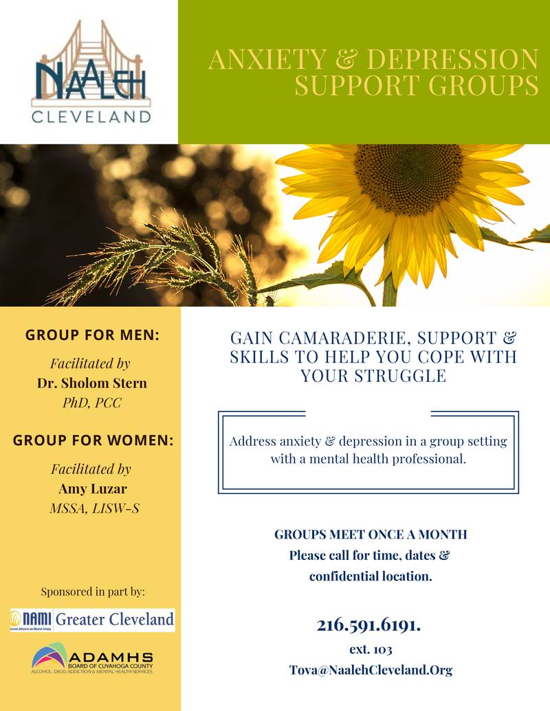 Naaleh Anxiety and Depression Support Groups Forming July 25, 2019 Leave a Comment Call Naaleh to find out if you can benefit from this support group: 216-591-6191.