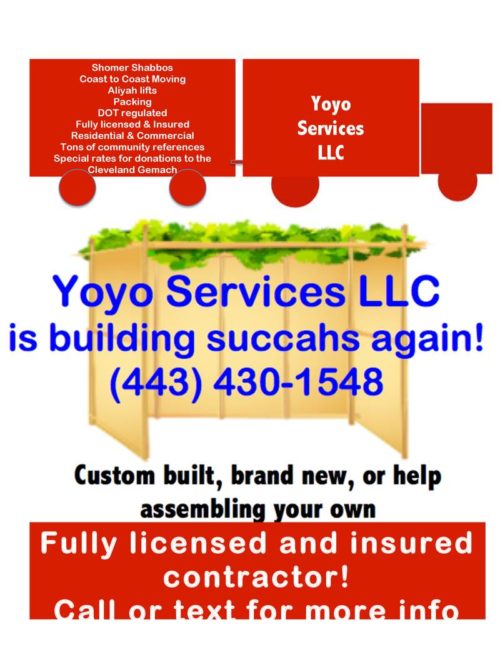For inquiries call or text Yoni at 213-453-3777 or via email at clevelandsukkahcenter@gmail.com.