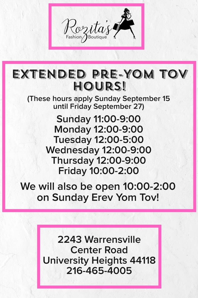 Rozita’s Fashion Boutique Extended Pre-Yom Tov Hours