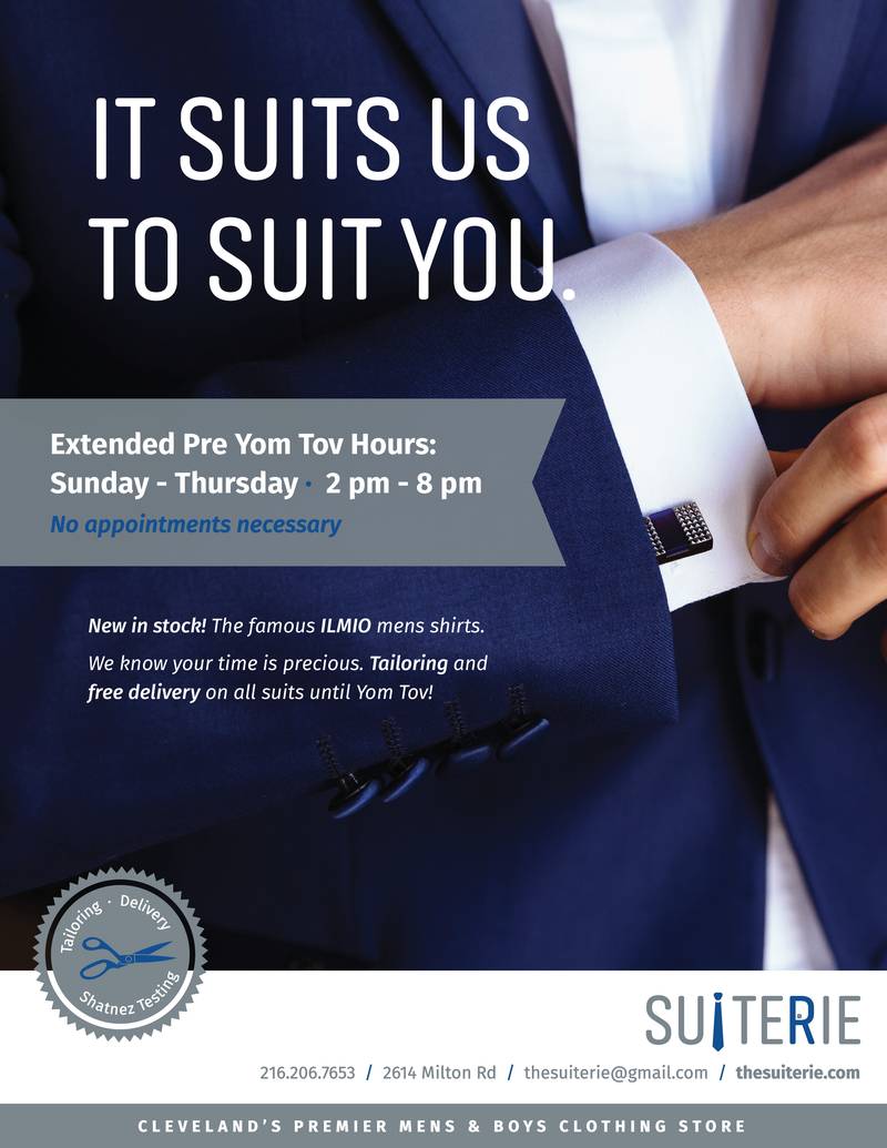 The Suiterie Extended Pre Yom Tov Hours! No Appointment Necessary