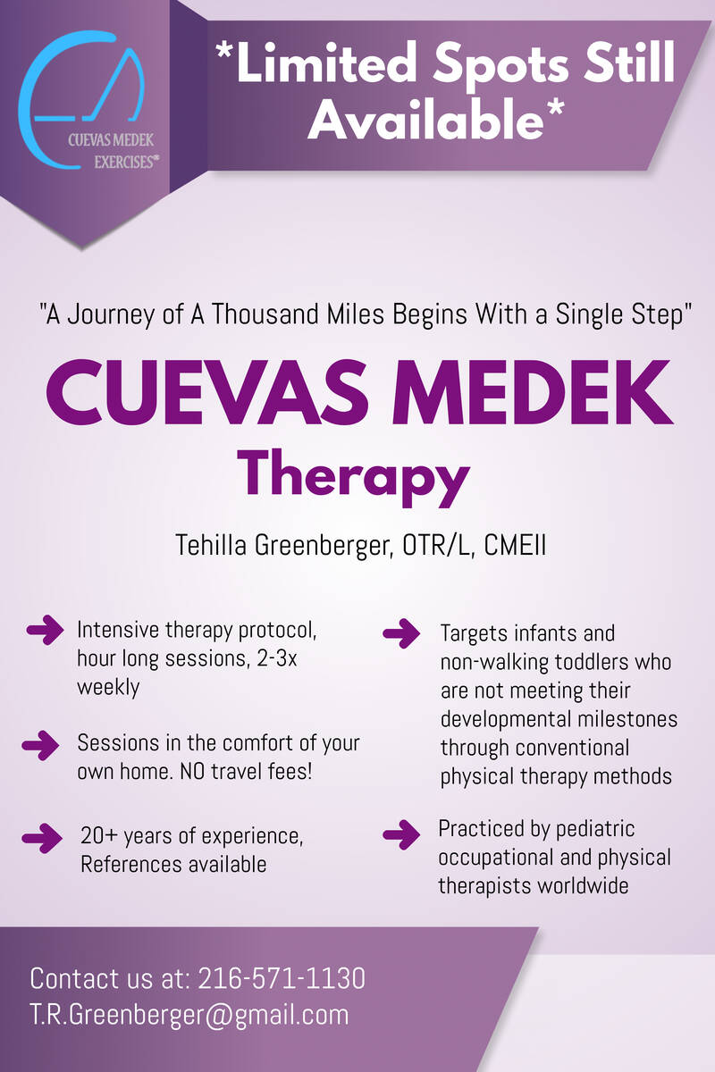 Cuevas Medek Therapy – Limited Spots Still Available With Therapist Tehilla Greenberger October 23, 2019 Leave a Comment