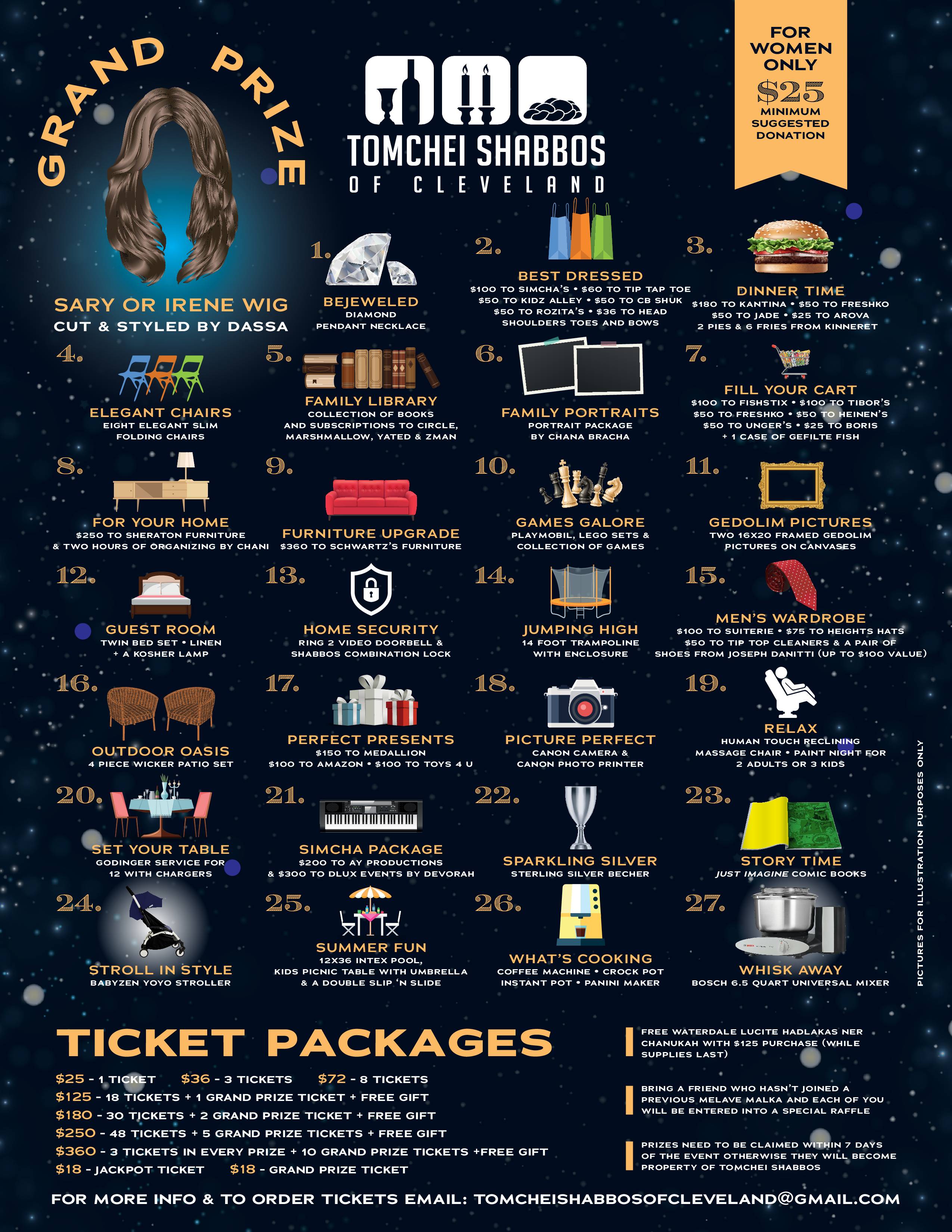 Amazing Prizes for Tomchei Shabbos Auction! Get Your Tickets Now!