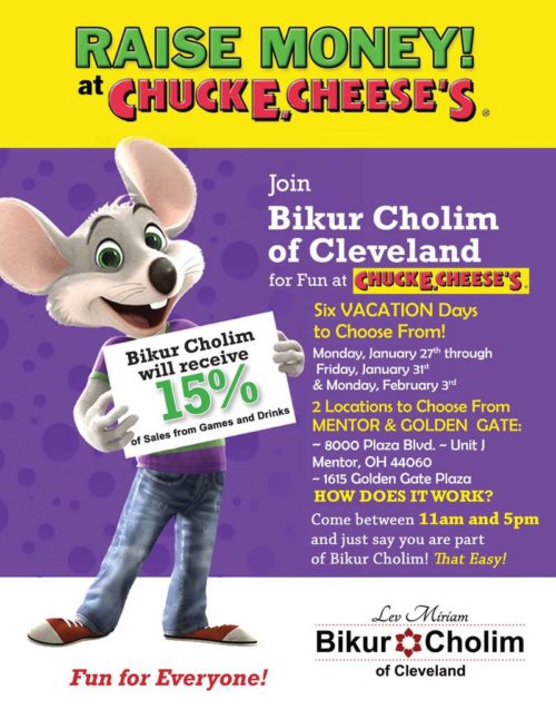 Help Bikur Cholim Raise Money this Vacation at 2 Chuck E. Cheese’s Locations!