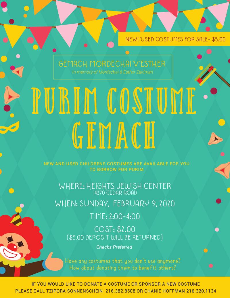 Purim Costume Gemach, Sunday, February 9th