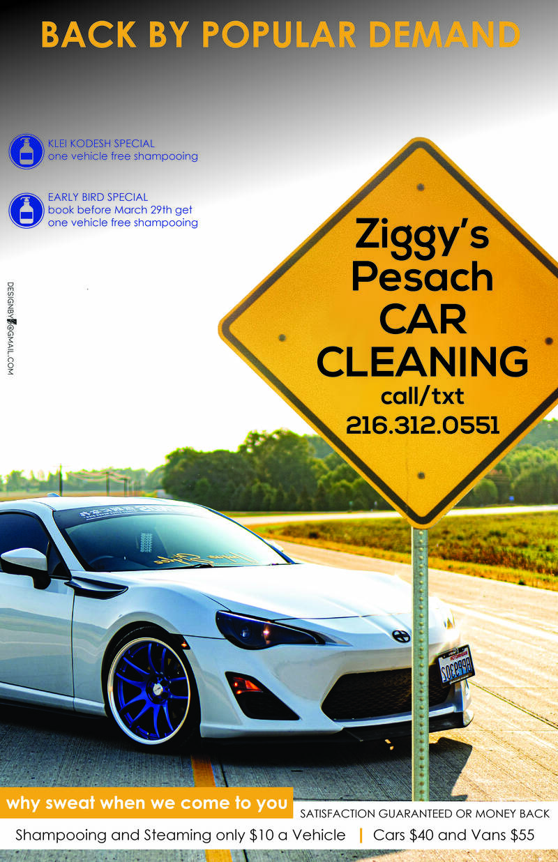 Ziggy’s Pesach Car Cleaning is Back Again – We Come to You! Book Today! March 15, 2020 Leave a Comment Call/text 216-312-0551.