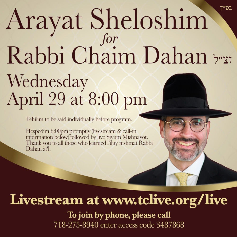 If saying tehilim & mishnayot, give yourself enough time to complete before the program is scheduled to begin at 8:00 PM.