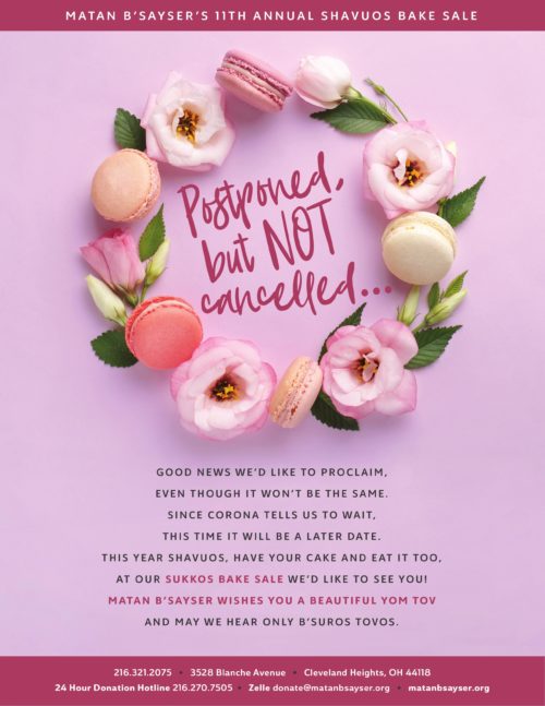 Donate online today at www.clevelandchesedcenter.org, all donations tripled. To volunteer to help with our campaign, please call: 216-932-3115.