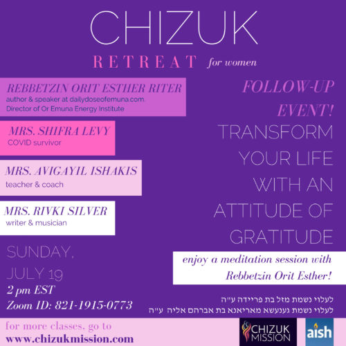 Chizuk Retreat Follow Up Event Sunday, July 19