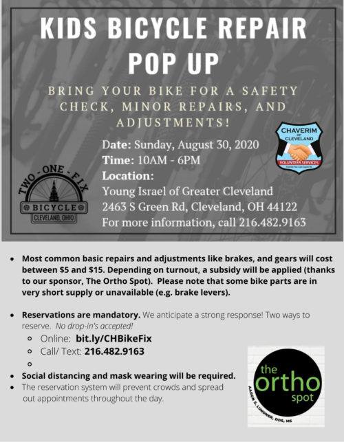 Kids (And Adults) Bicycle Repair Popupat Young Israel Beachwood August 30th