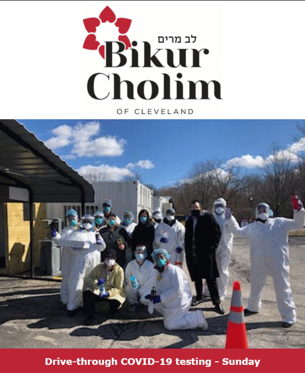 Bikur Cholim & University Hospitals will be hosting a drive-through COVID-19 testing for all ages (including infants).