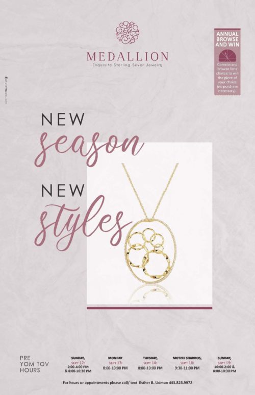 Medallion Exquisite Sterling Silver Jewelry Yom Tov Hours