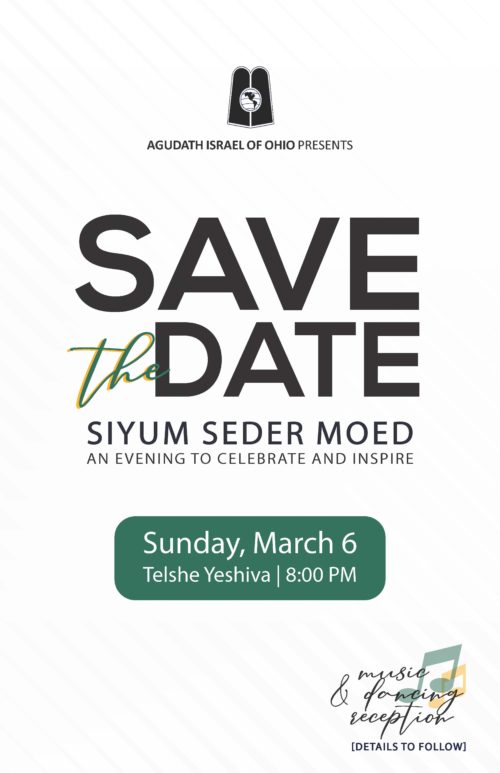 Save the Date: Community-Wide Siyum on Seder Moed March 6th!