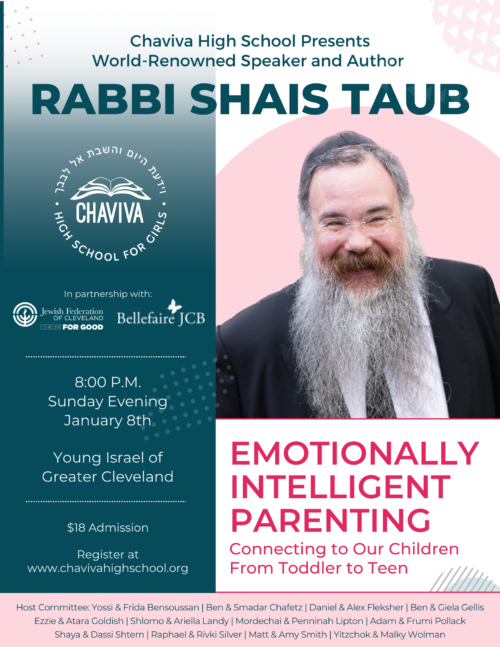 Chaviva High School Community-Wide Event with Rabbi Shais Taub, Sunday, January 8th January 7, 2023 Leave a Comment Visit www.chavivahighschool.org to register.