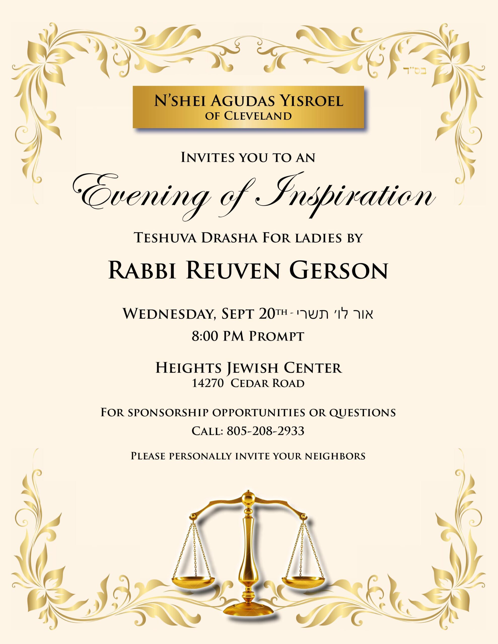 Nshei Teshuva Drasha Evening of Inspiration, Tonight, Wednesday Night September 20, 2023 Leave a Comment