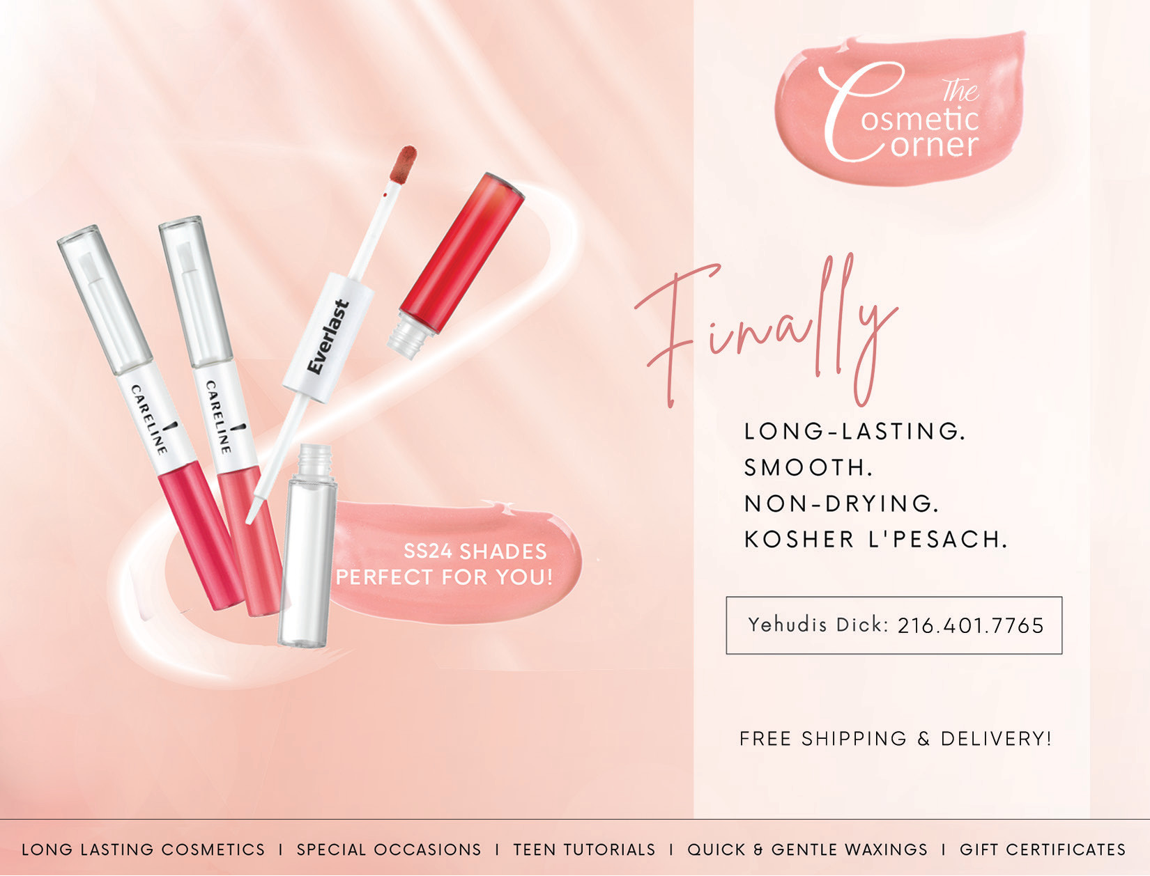 Long Lasting Lipstick and Cosmetics; Kosher L’Pesach! April 9, 2024 Leave a Comment Long Lasting Lipstick and Cosmetics; Kosher L’Pesach! SS24 Shades Perfect For You! Book an appointment or text your order: 216-401-7765