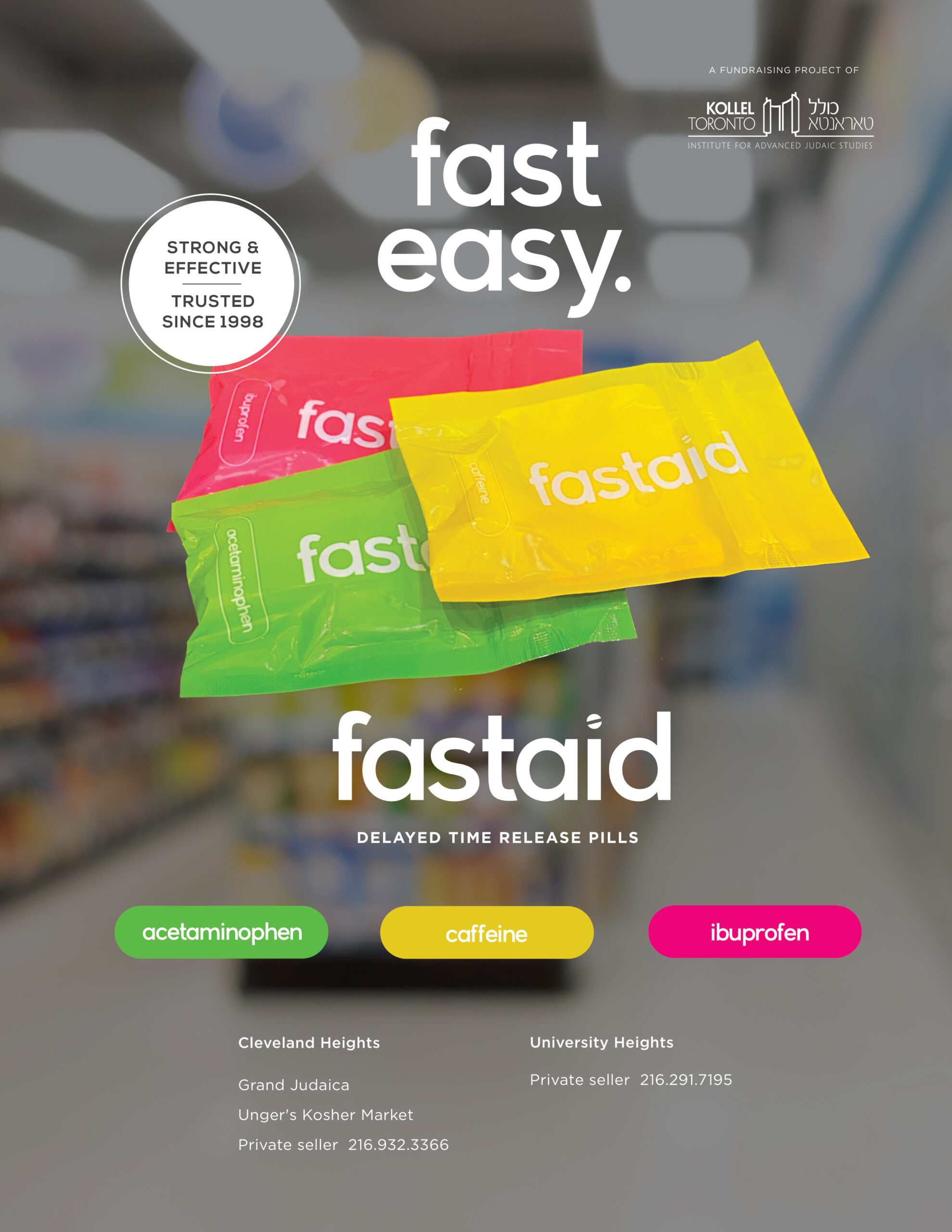 Checks should be written to Kollel Avreichem of Toronto.