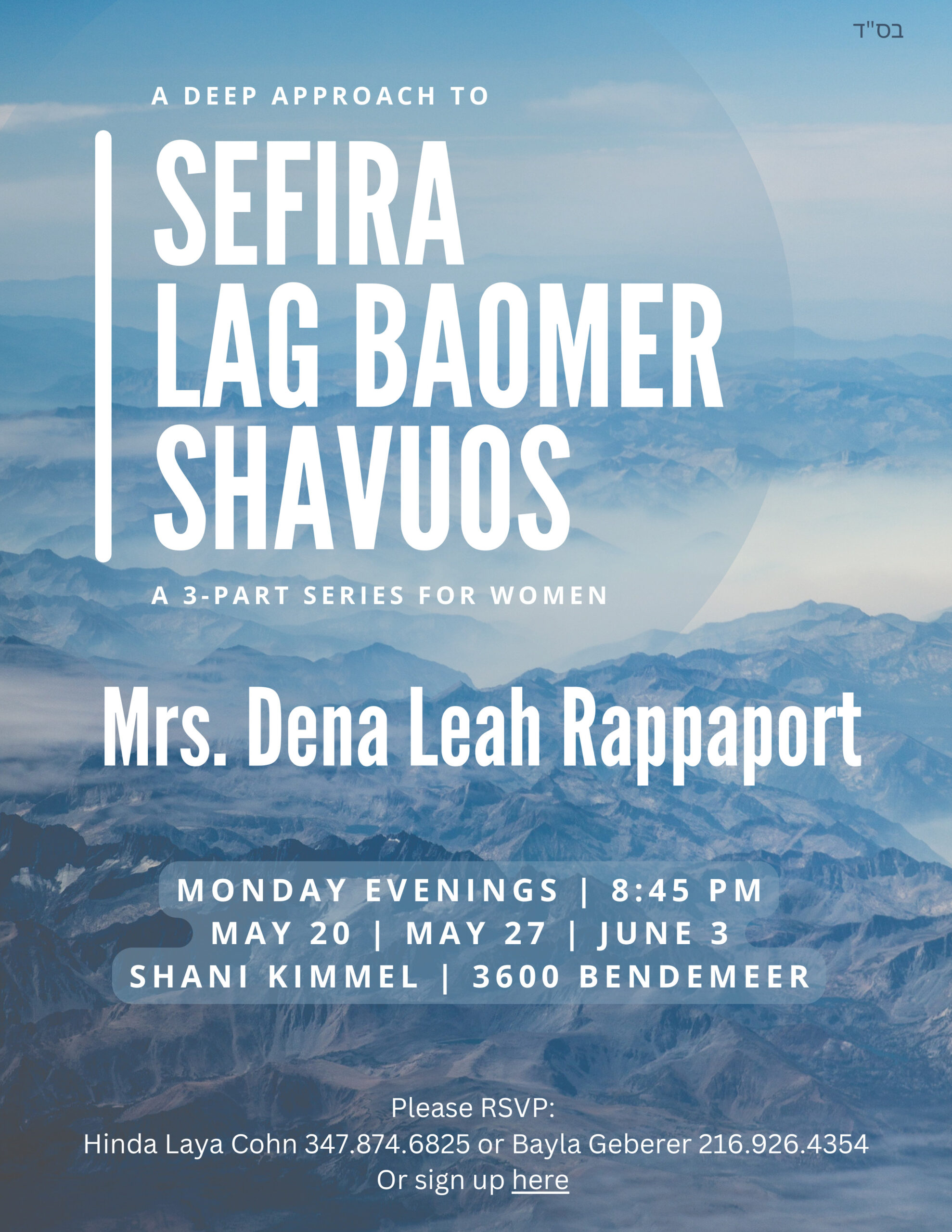 A Deep Approach to Sefira, Lag B’Omer, Shavuos – a 3-part women’s series
