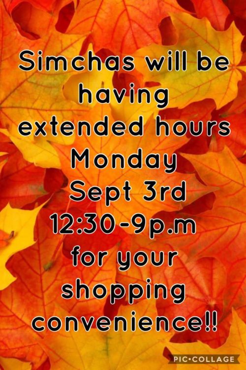 - Monday, Labor Day: 10-11am and 7:30-8:30pm