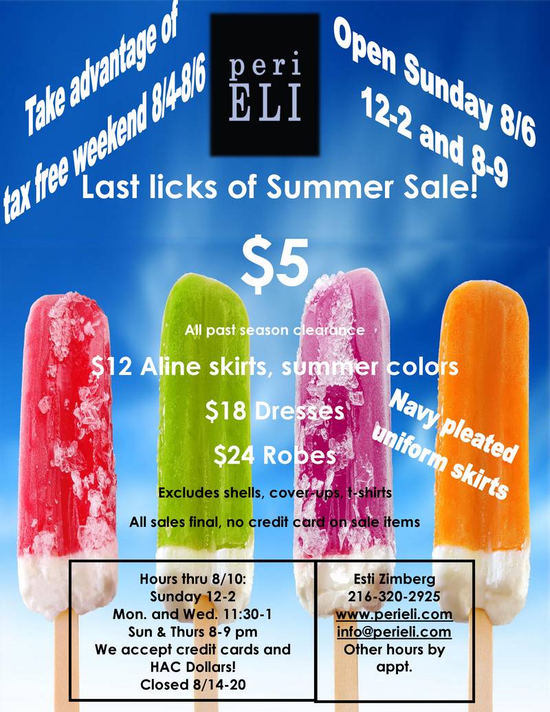 Last Licks of Summer Sale at Peri Eli!