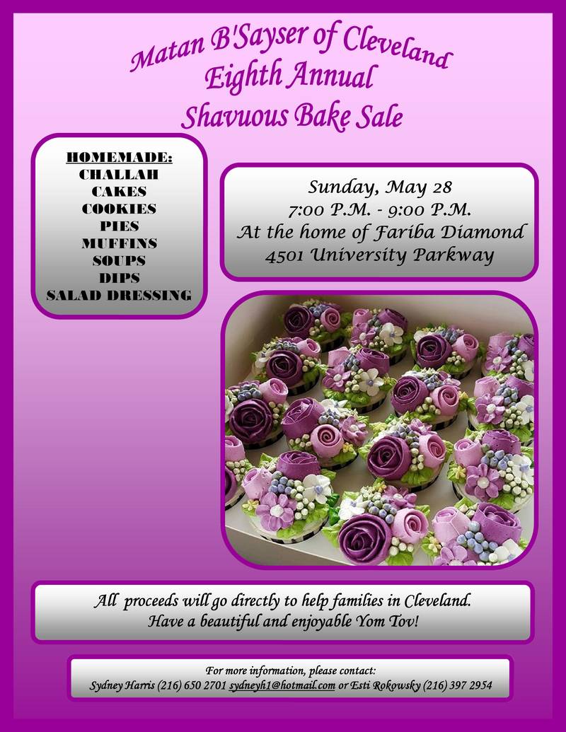 Matan B’Sayser Eighth Annual Bake Sale, Sunday, May 28!