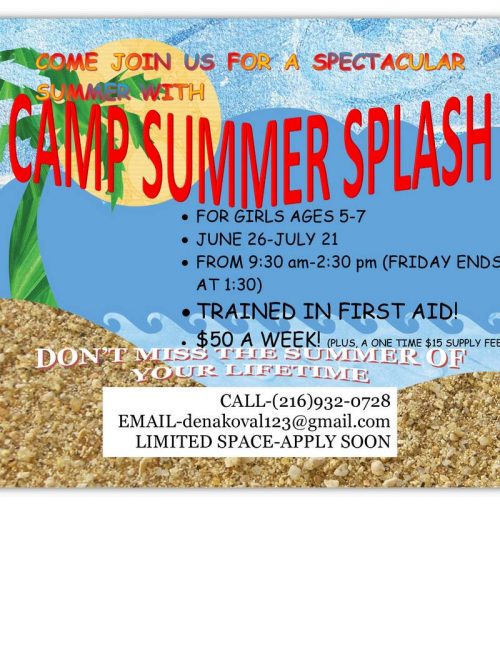 Camp Chabad to begin registration immediately for the 8 week session beginning June 26, 2017. Please read the enclosed camp flyer and enrollment form for details. You may contact Jill Weiszner via text or call my cell phone at 216 402 4877. A limited number of scholarships and reduced pricing are available based on need.
