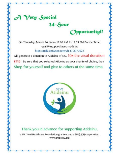 Support Atideinu at smile.amazon.com – One Day Only! March 16