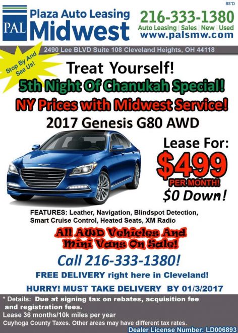 Fifth Night of Chanukah Special at Plaza Auto Leasing