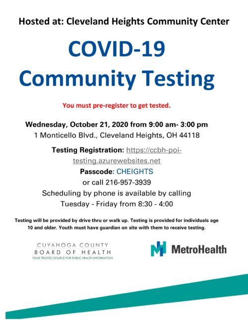 Click here to register online https://ccbh-poi-testing.azurewebsites.net/ and enter passcode HEIGHTS3 or call 216 957-3939 (between 8:30am- 4:00 pm).