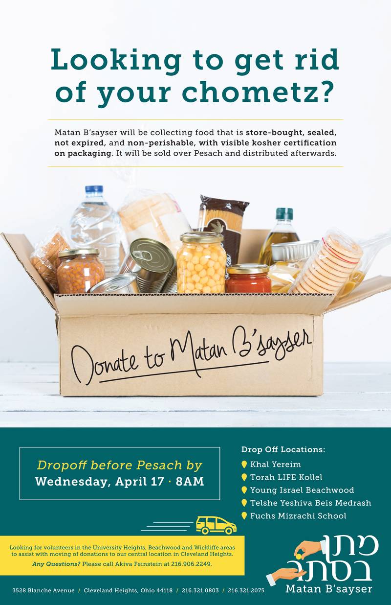 Matan B’sayser is Accepting Donations of Chometz Items