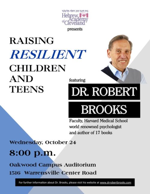 “Raising Resilient Children and Teens” – a HAC Event Featuring Dr. Robert Brooks, Wednesday, 8PM