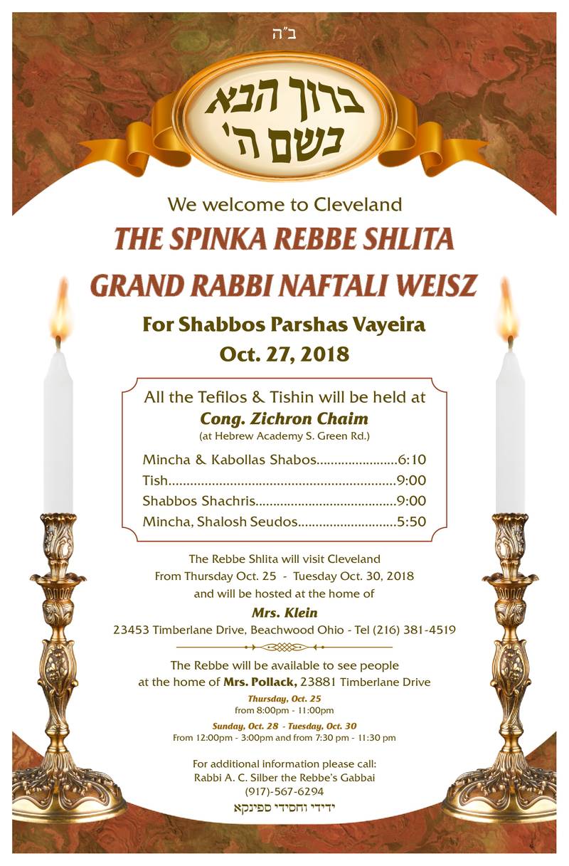 Bruchim Habaim to the Spinka Rebbe, Shlita – Parshas Vayeira