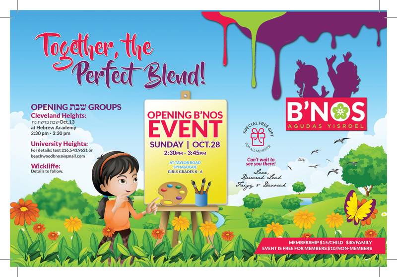 Updated: Welcome to B’nos 5779! Groups Start This Shabbos (Noach) and a Special Opening Event Sunday, 10/28