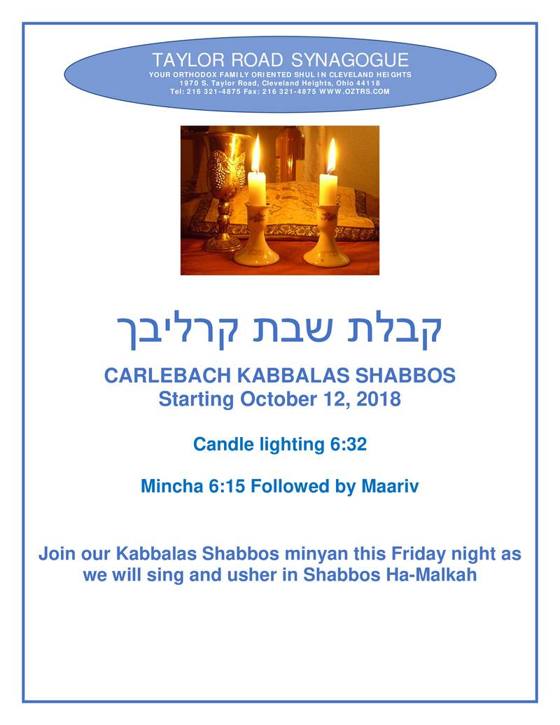 New Carlebach Kabbalas Shabbos at Taylor Road Synagogue