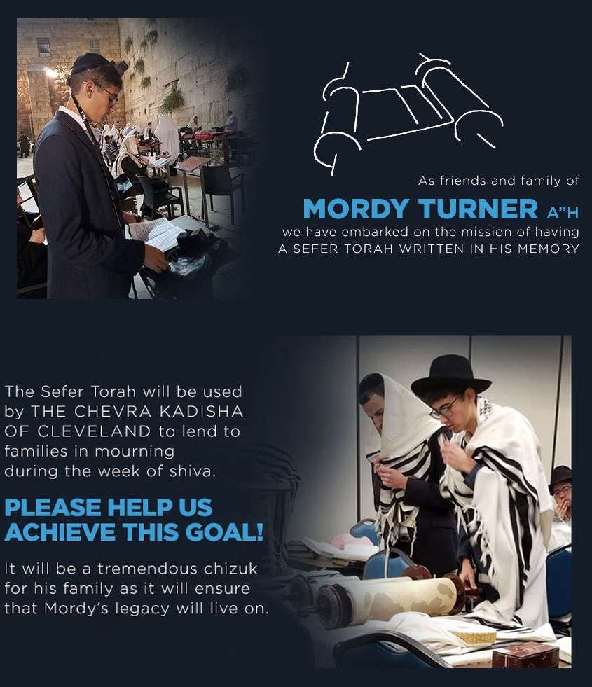 In Mordy Turner’s Merit, Help Sponsor a Sefer Torah for Chevra Kadisha!