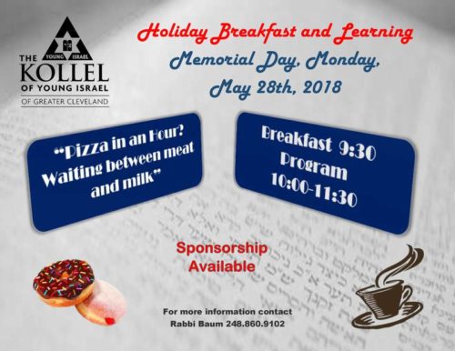 YIGC Kollel Memorial Day Breakfast and Learning – “Pizza in an Hour? Waiting Between Meat and Milk”