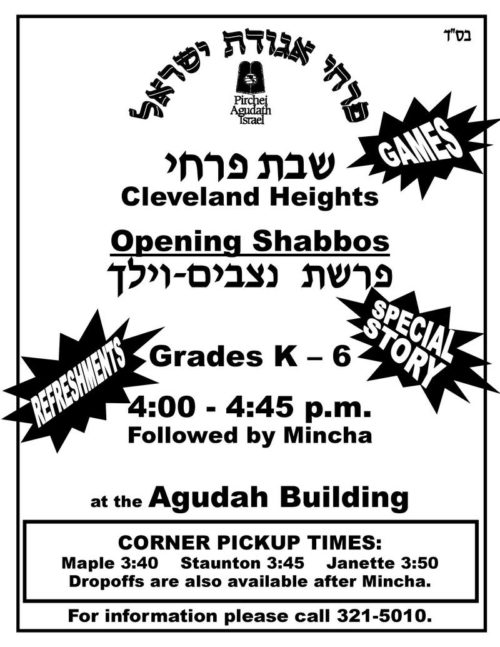 Agudah Pirchei Opening Shabbos!