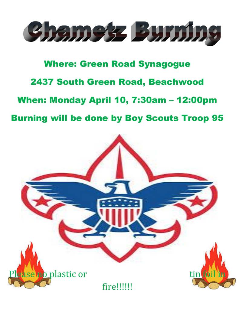 Boy Scout Troop 93 Chametz Burning at Green Road Synagogue