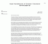 Letter from the Vaad Harabbonim of Greater Cleveland Regarding Community Mikvaos