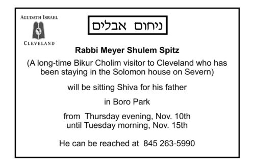 Shiva will take place at the Plaut Home 4507 Groveland Road, University Heights (corner of Green & Groveland).