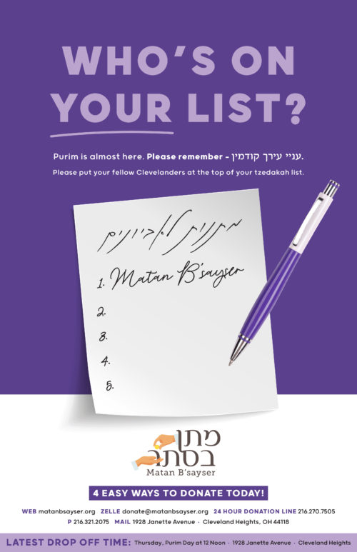 The Tzidkas Yoseph Naphtali mailing should be arriving around April 9th. The mailing goes to Rabbi Burnstein and Rabbi Hirschfeld. Alternatively, please donate using one of the methods listed below. Time is short and there is much need.