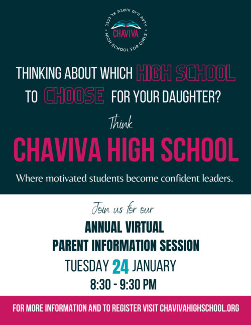 Chaviva High School Virtual Parent Information Session, Tuesday, January 24th