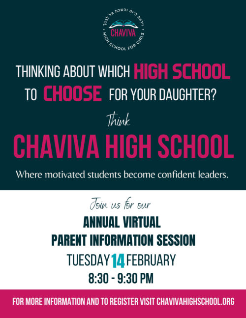 Rescheduled: Chaviva High School Virtual Parent Information Session, Tuesday, February 14th