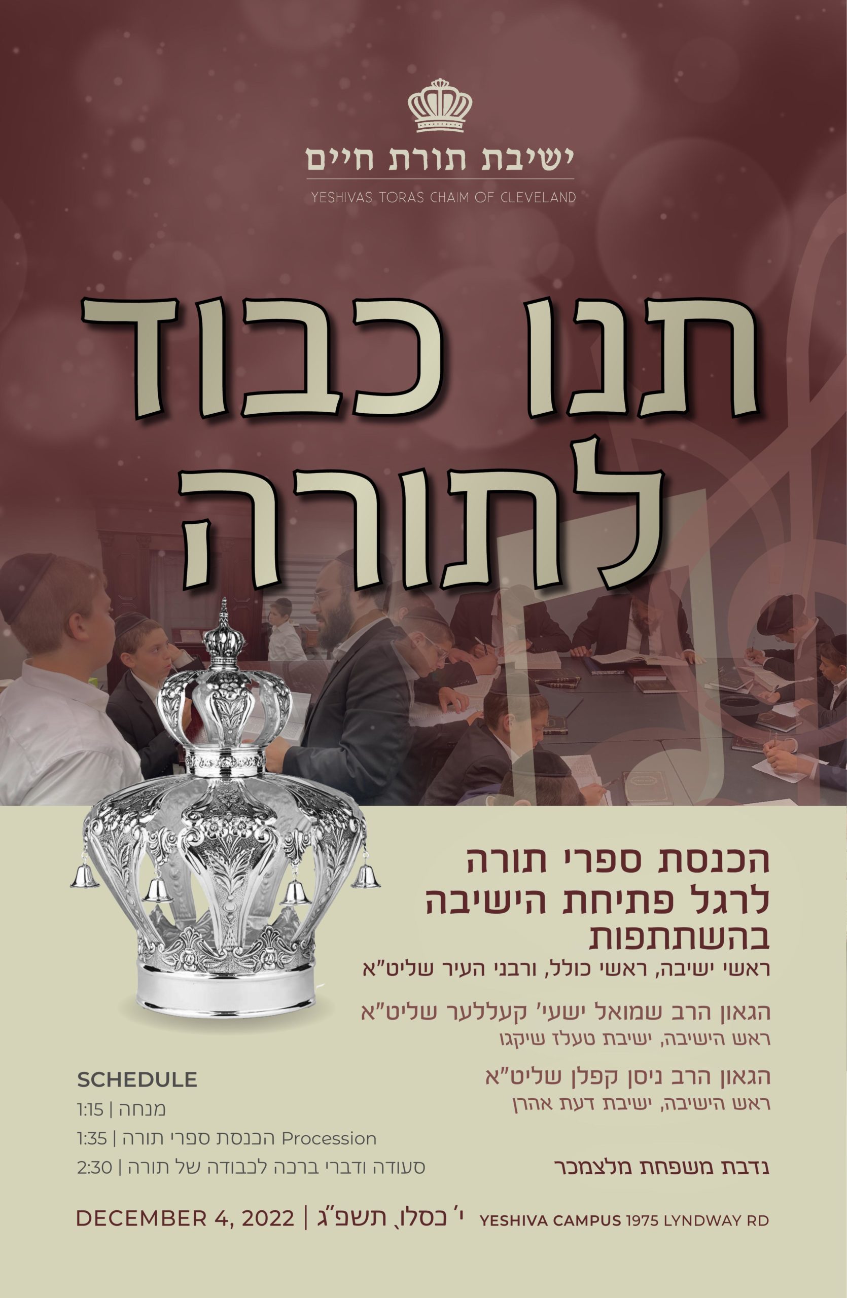 Yeshivas Toras Chaim Hachnosas Sifrei Torah, Sunday, December 4th