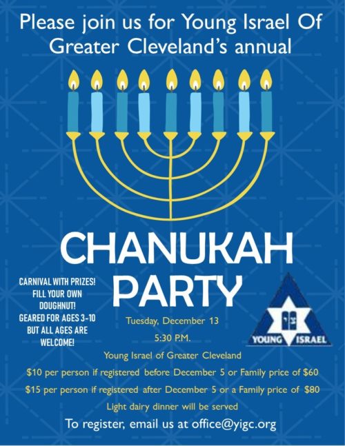Young Israel Chanukah Party Tuesday, December 13th!