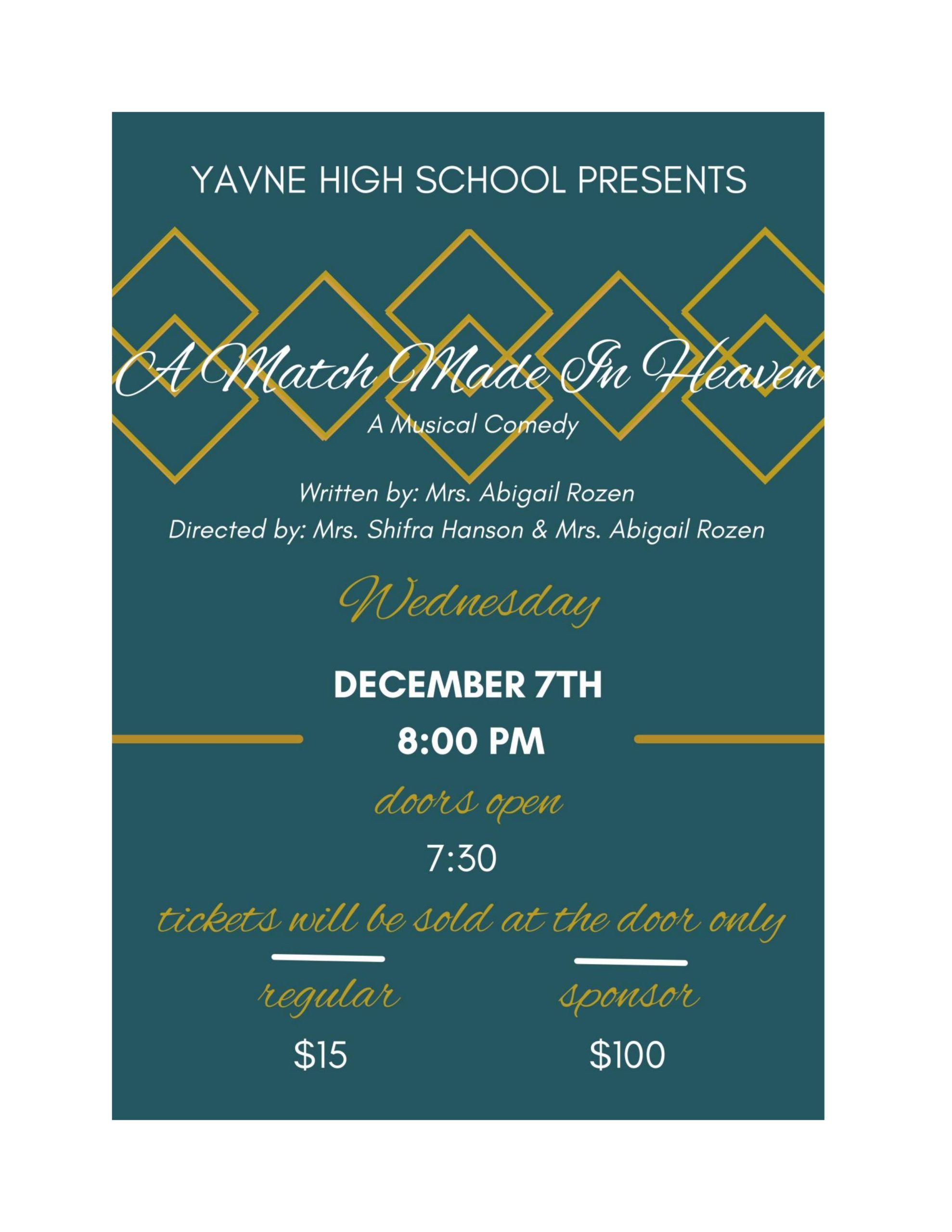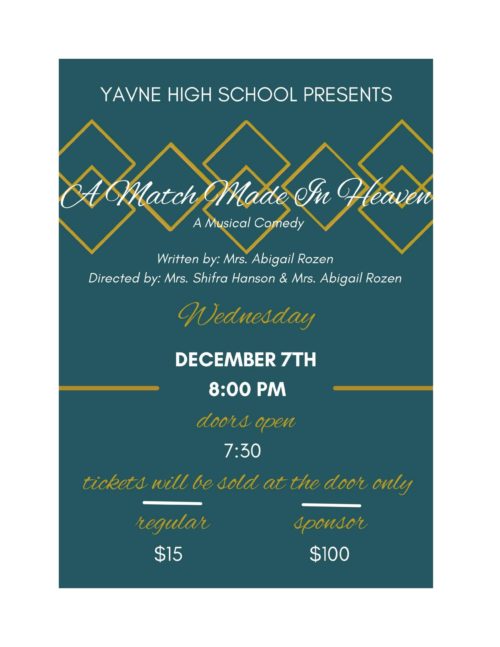 Yavne High School Product Wednesday, December 7th