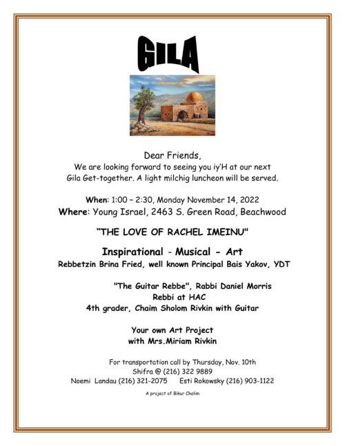 GILA Presents “The Love of Rachel Imeinu”, Monday