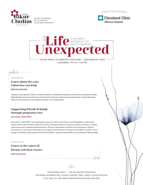 Bikur Cholim and Cleveland Clinic Present “Life Unexpected – A Women’s Reproductive Health Seminar” Sunday, December 19th
